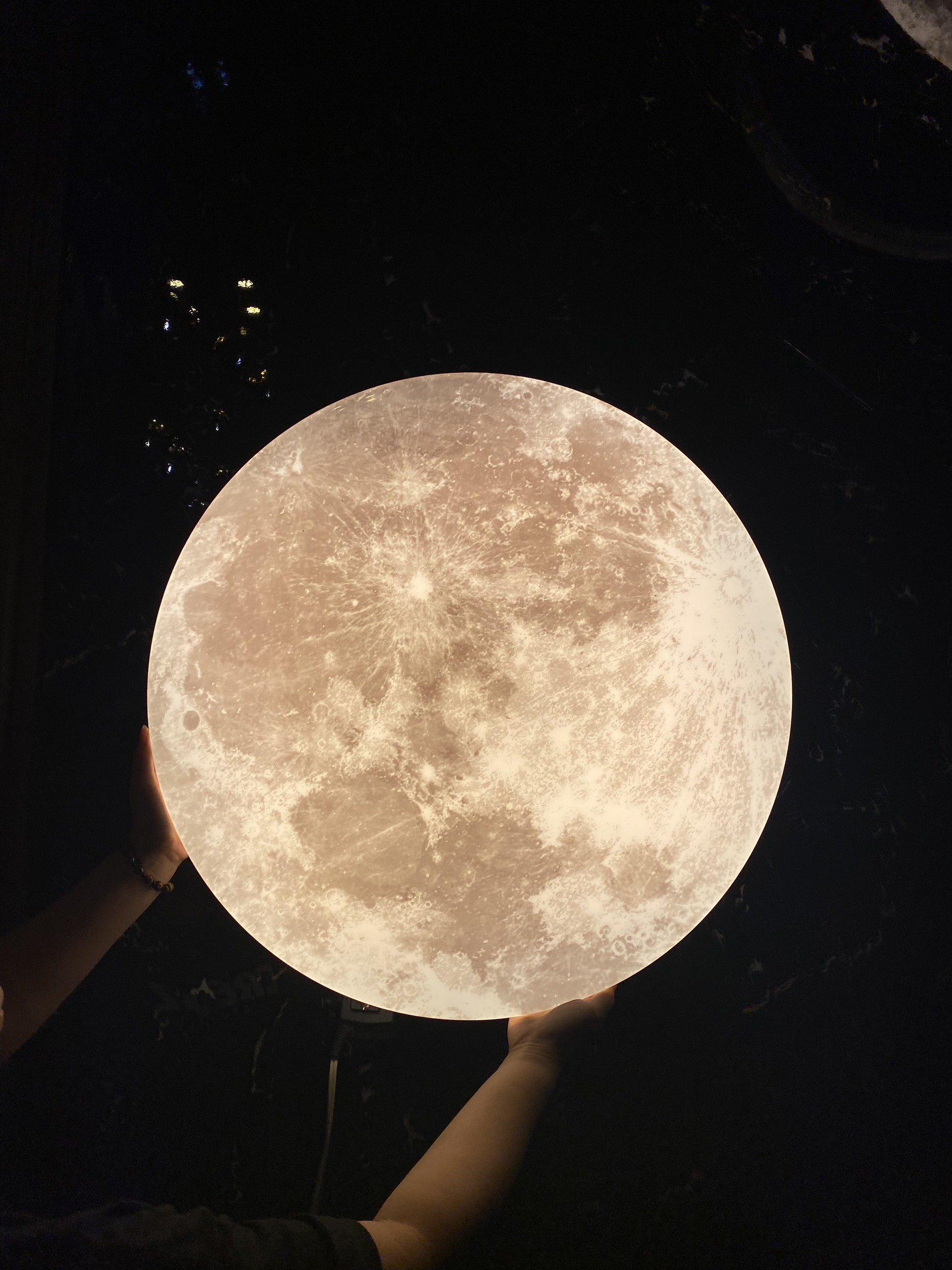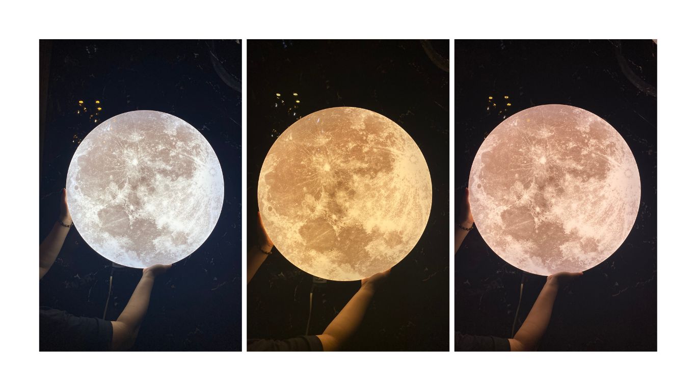 Ánh sáng phản chiếu lên chao đèn làm nổi bật các chi tiết của mặt trăng rất đẹp