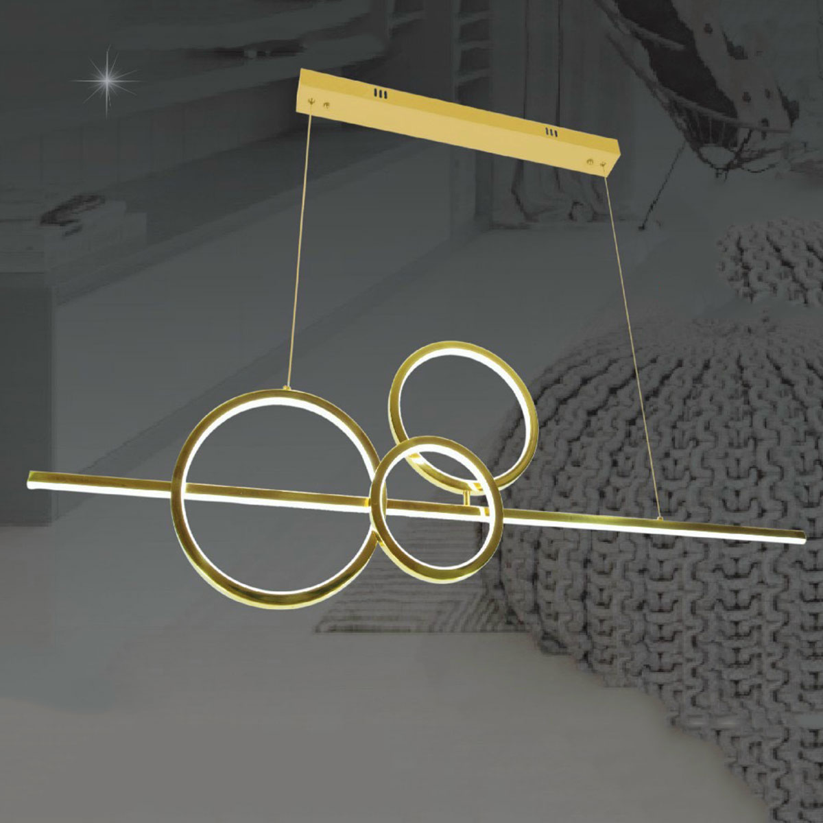 Đèn thả 3 vòng ngang dài cho bàn ăn TH-8332 phù hợp cho các không gian như phòng khách, phòng ăn, phòng làm việc, quán cà phê, spa, chung cư,..