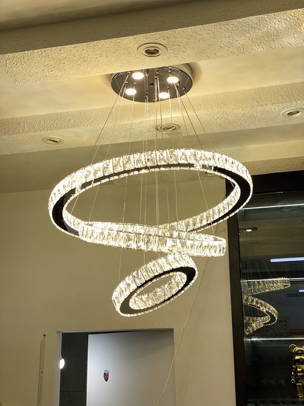 - Thiết kế: Đèn thả pha lê cao cấp THD7032T246, kích thước Φ200+400+600 có thiết kế 3 vòng tròn bằng hợp kim đính pha lê dày 5 phân, rất sang trọng và đẳng cấp. Đây sẽ là điểm nhấn tuyệt vời cho không gian nhà bạn. Đèn còn có kích thước lớn hơn Φ300+500+700 cho khách hàng lựa chọn.