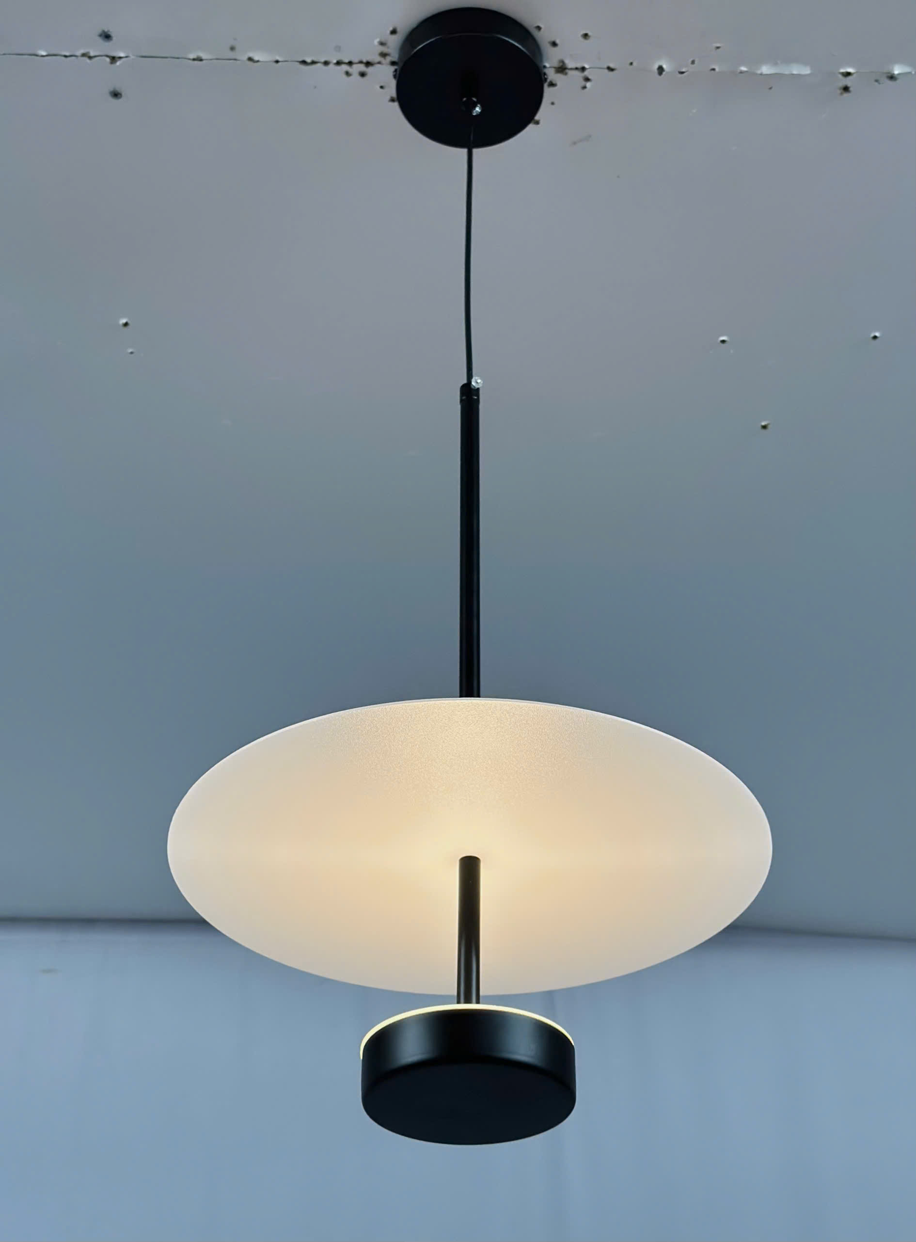 Hình ảnh thực tế đèn thả decor đĩa tròn THD59 khi bật đèn