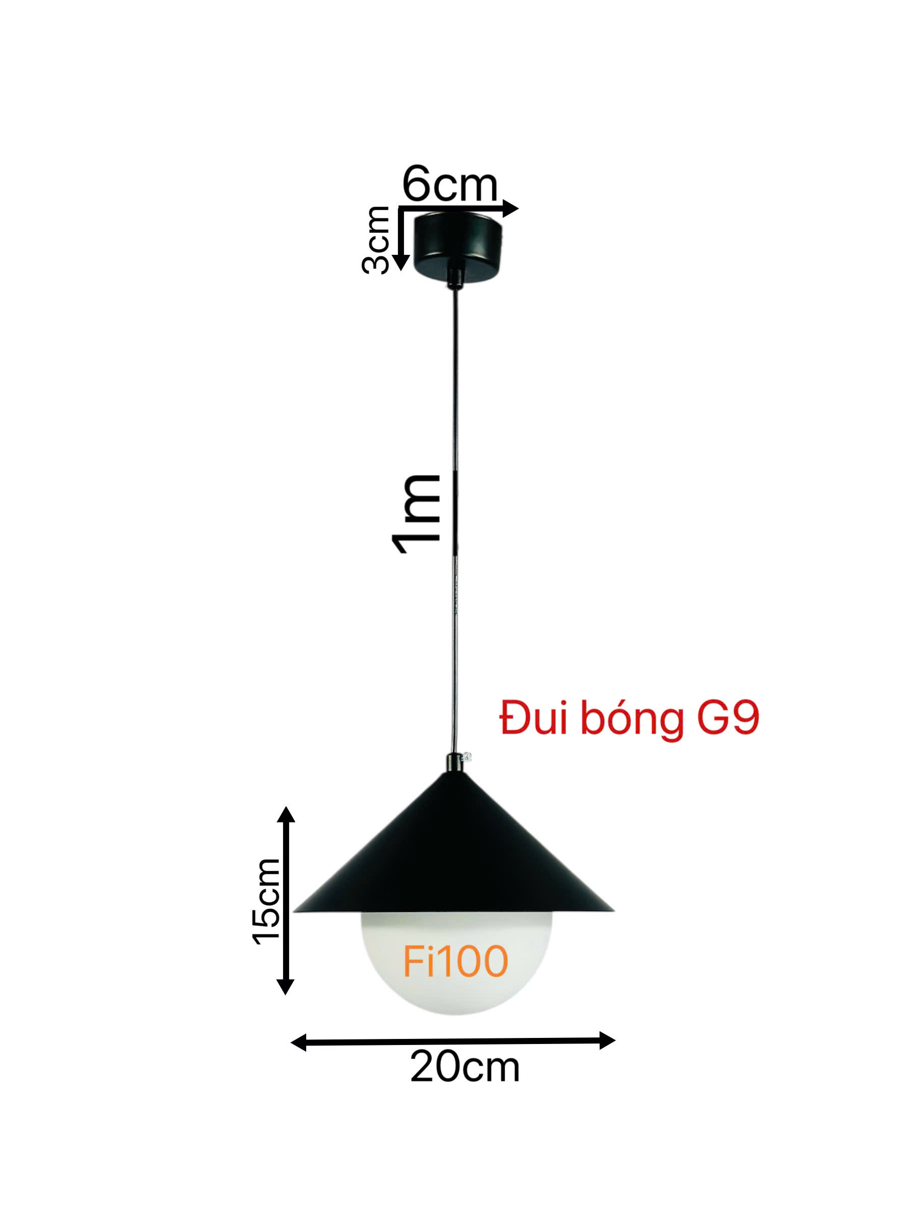 Kích thước chao đèn: Đường kính 20cm, chiều cao 15cm – kích thước lý tưởng cho dòng đèn thả đơn.