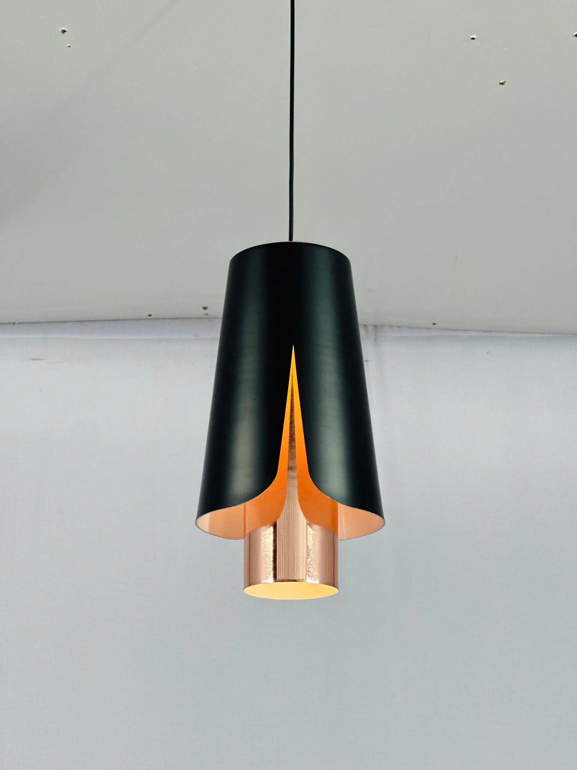 Hình ảnh thực tế đèn thả hiện đại màu đen hình phễu THD96