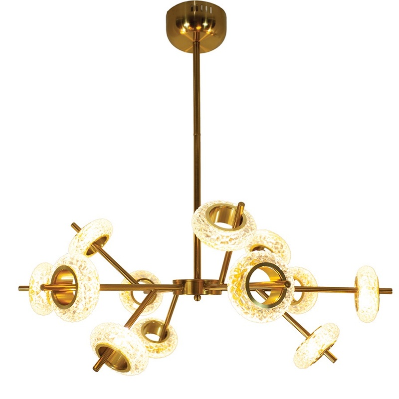 - Thiết kế: Thiết kế hiện đại mang tính nghệ thuật cao với các vòng led được xếp theo các hướng khác nhau. Thân đèn xi vàng đồng sang trọng rất phù hợp để trang trí tạo điểm nhấn, chiếu sáng tô điểm không gian sống