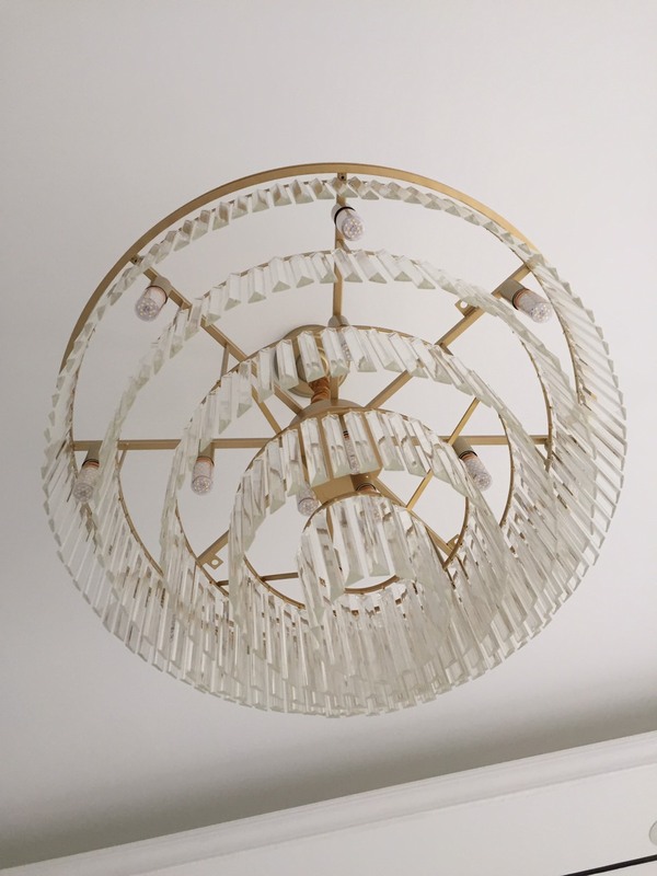 - Màu sắc: màu vàng gold sang trọng kết hợp với những thanh pha lê màu trắng trong suốt