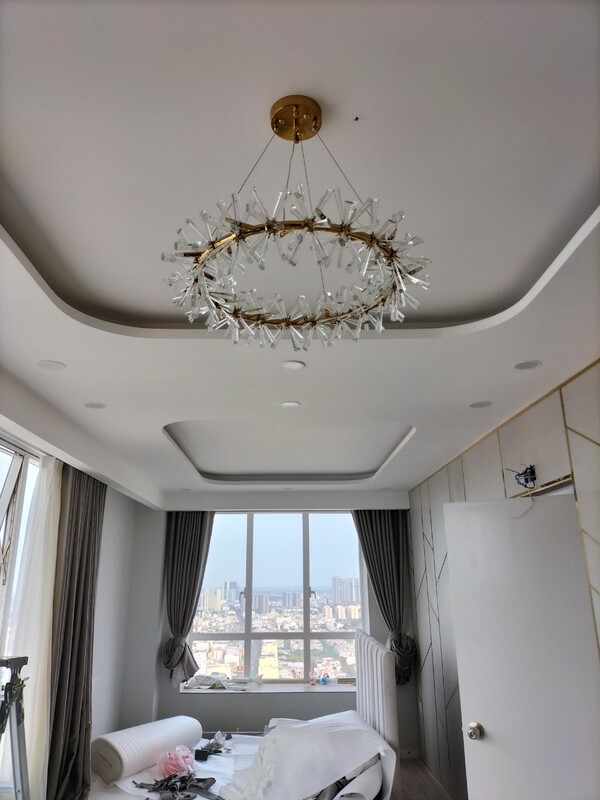 - Chất liệu: hợp kim không gỉ+pha lê, chống bám bụi, dễ lau chùi, vệ sinh.