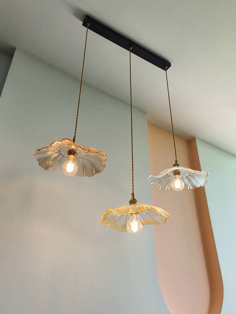 Đèn thả thủy tinh 3 chao trà TT42T3