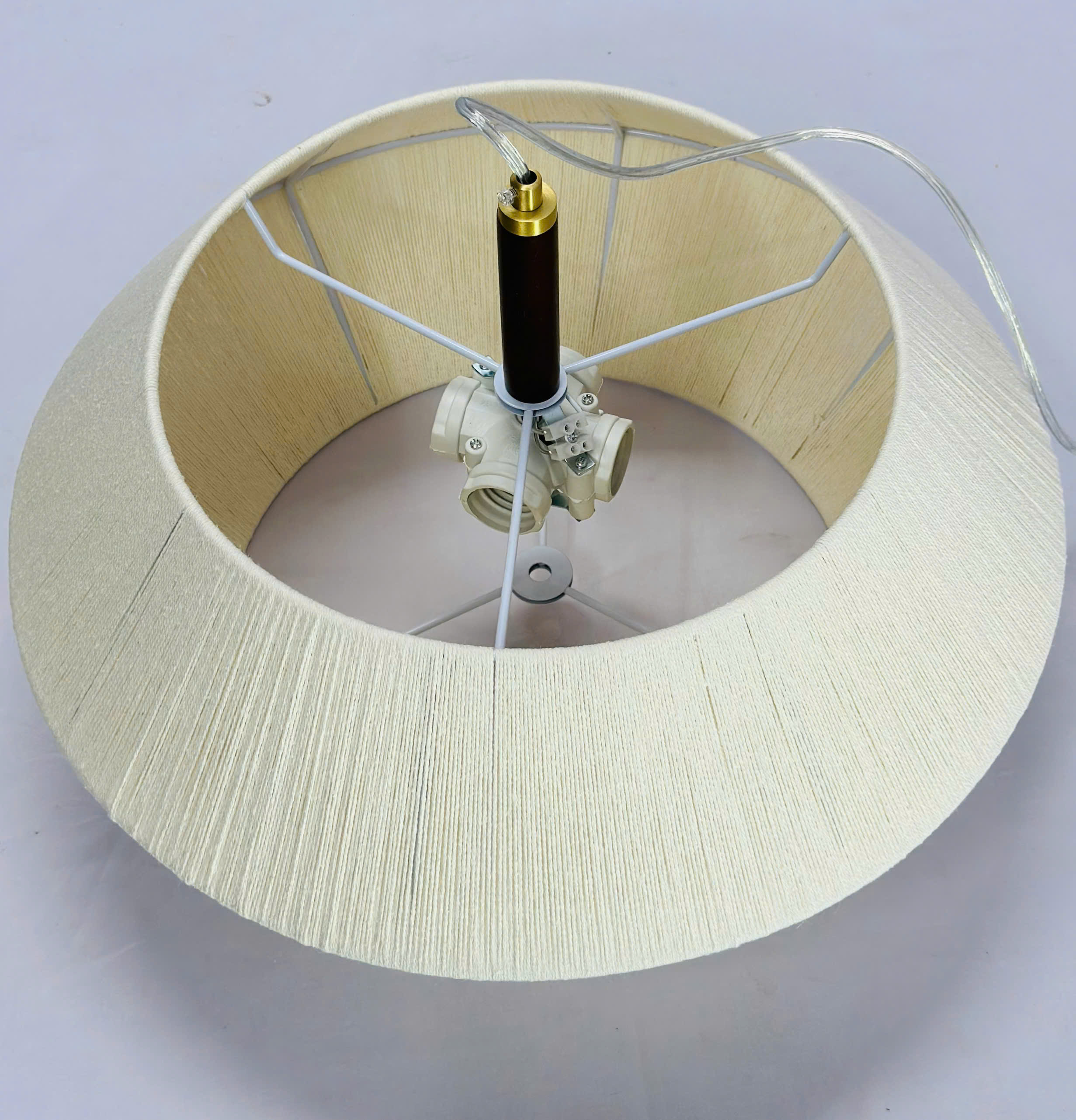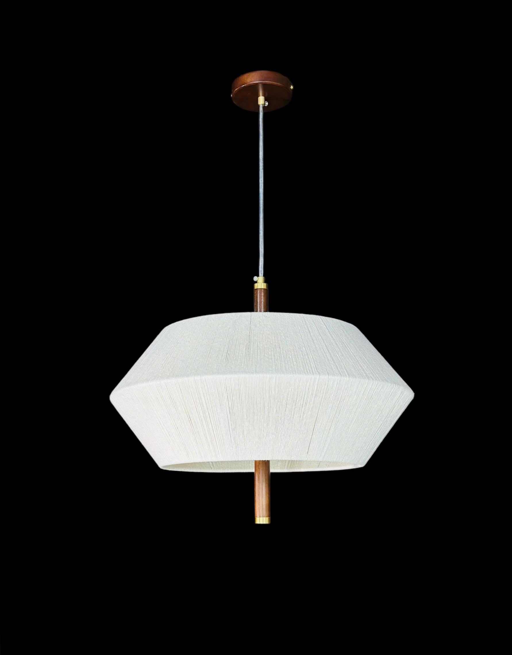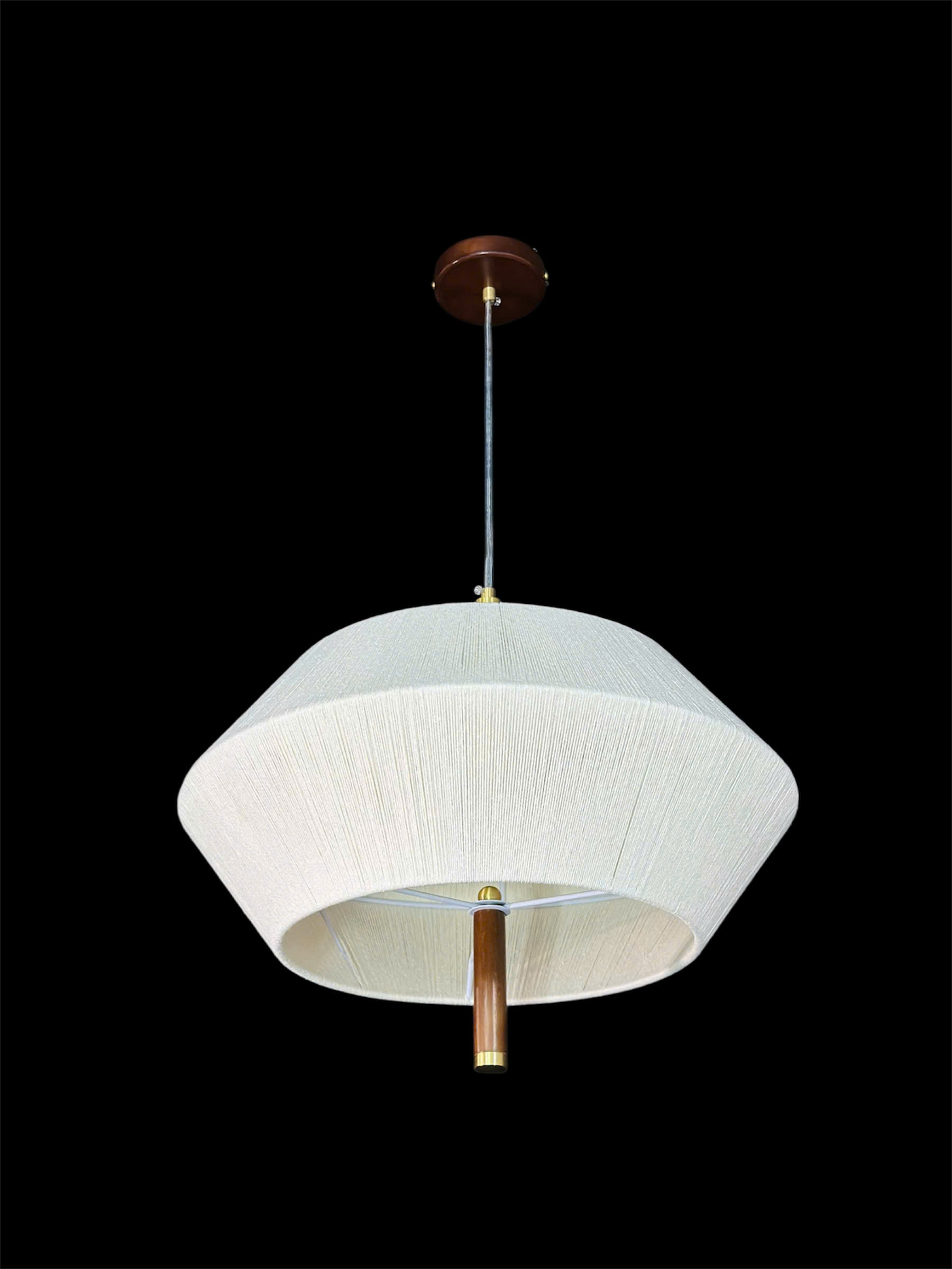 - Màu sắc: Sản phẩm mang tông màu trắng kem tinh khôi của vải, kết hợp cùng màu gỗ ấm áp. Sự phối hợp màu sắc này cực kỳ phù hợp cho những không gian đèn thả decor quán cafe phong cách tối giản.