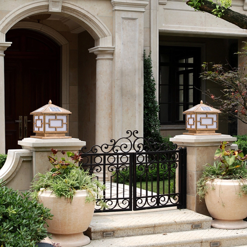 Đèn trụ cổng năng lượng mặt trời màu đồng kiểu tân cổ điển TD-15-20