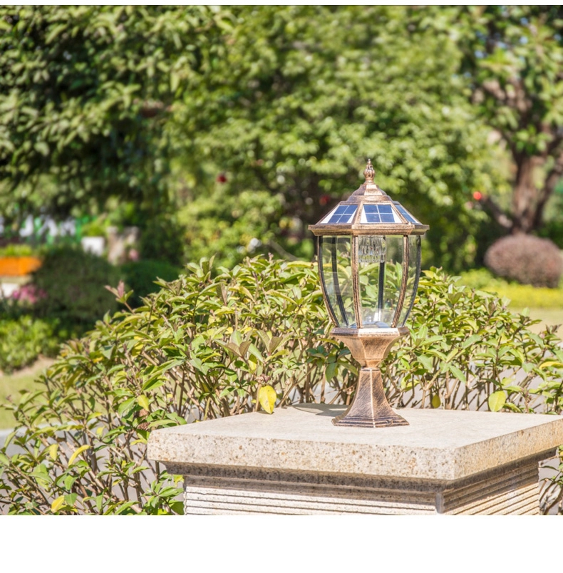 Đèn trụ cổng năng lượng mặt trời màu đồng kiểu tân cổ điển TD-15-20