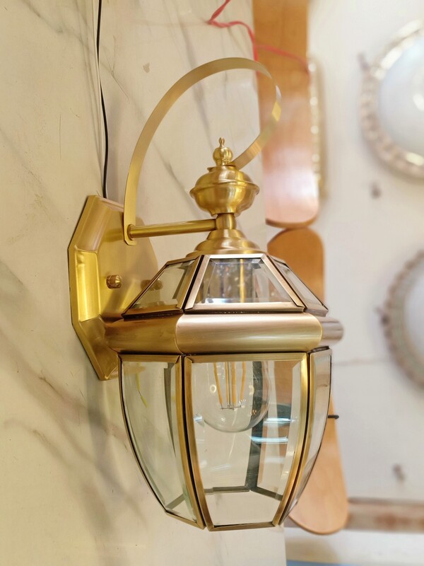 - Màu sắc: vàng đồng, chao đèn bằng thủy tinh trong suốt