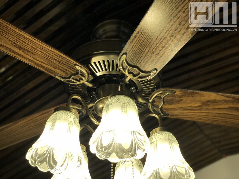 - Quạt trần đèn chùm trang trí kiểu tân cổ điển là sự kết hợp giữa quạt làm mát và đèn chiếu sáng giúp tiết kiệm điện và tiết kiệm không gian cho ngôi nhà.