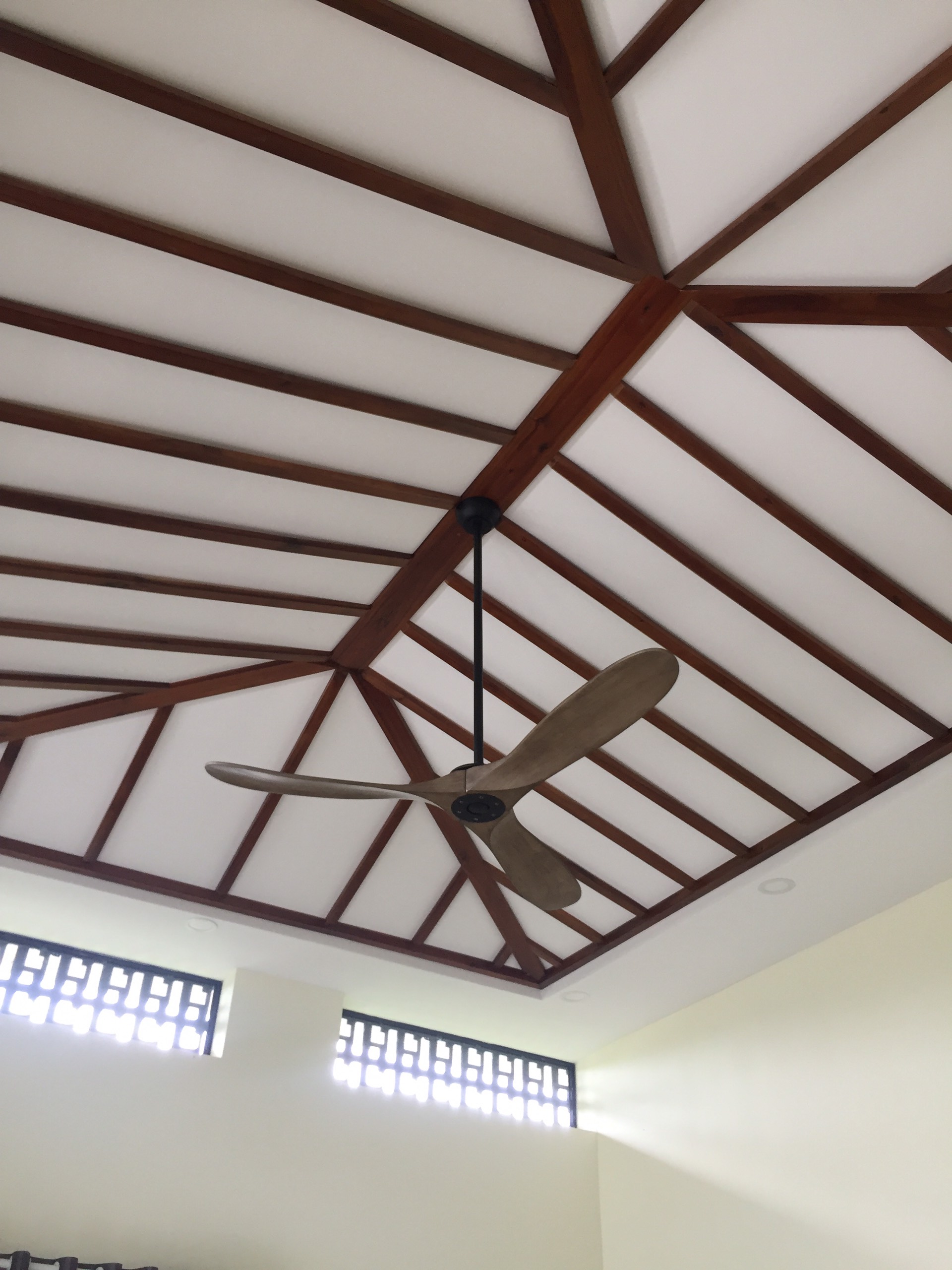Hình ảnh lắp đặt thực tế quạt trần 3 cánh gỗ màu xám khói Fengye FY519-OB