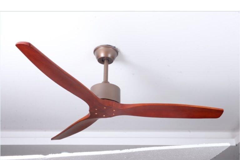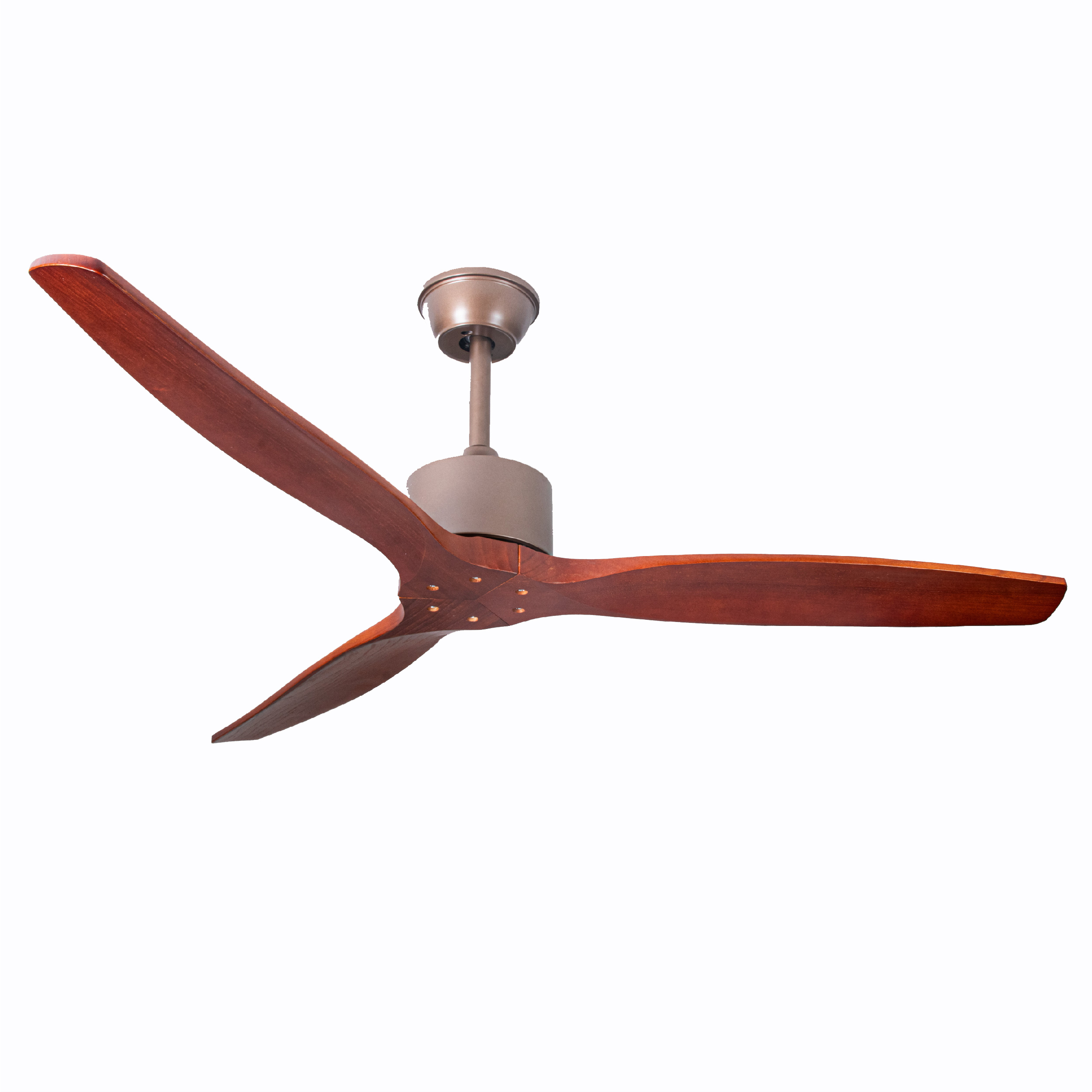 - 3 cánh quạt làm bằng gỗ màu cánh gián đã được xử lý không bị cong vênh mối mọt, bền đẹp theo thời gian