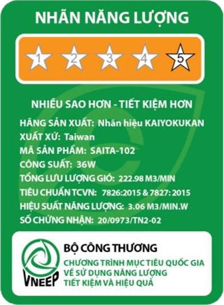 - Đạt chuẩn năng lượng 5 sao Bộ Công Thương, chứng nhận cao nhất cho sản phẩm tiết kiệm năng lượng
