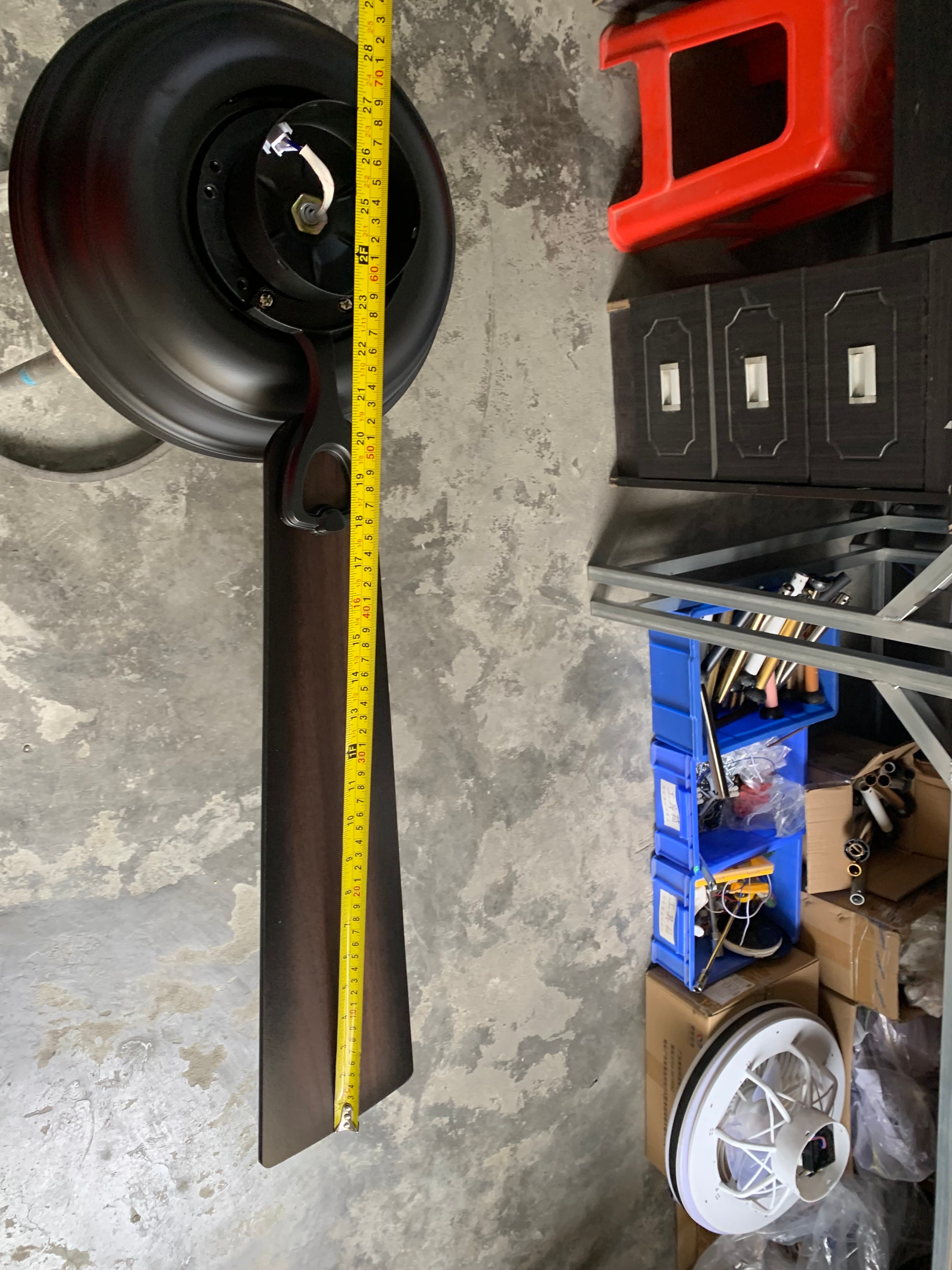Đo thực tế sải cánh quạt trần 355 có đèn 5 cánh gỗ nâu đỏ QT44