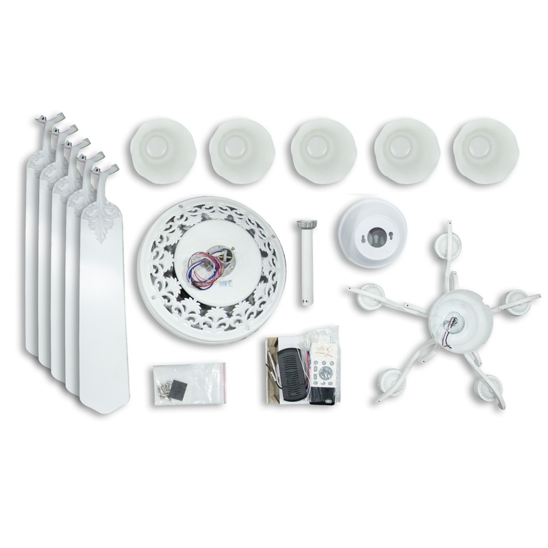 - Mẫu mã kiểu dáng luôn là tiêu chí hàng đầu khi khách hàng lựa chọn bất cứ một sản phẩm nào cho ngôi nhà của mình và quạt trần cũng không ngoại lệ. Quạt trần đèn 5 cánh có đèn Vifa 12 có thiết kế theo phong cách mang hơi hướng cổ điển và tân cổ điển với màu chủ đạo là màu trắng, điểm nhấn là các chao đèn thủy tinh loe ra như những bông hoa nở rộ.
