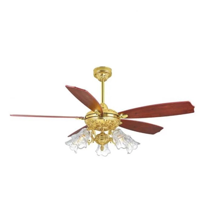 Quạt trần 5 cánh gỗ Fengye FY963 mạ vàng phòng khách