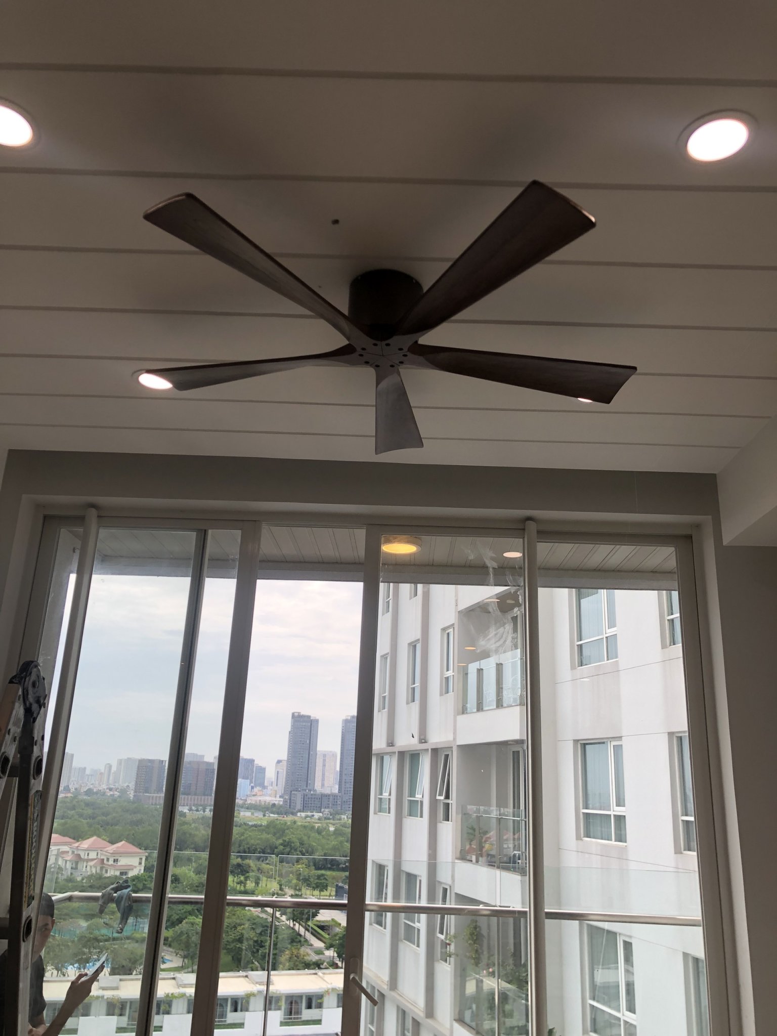 Quạt trần 5 cánh nhựa hình chiếc lá lắp phòng khách VIFA 405