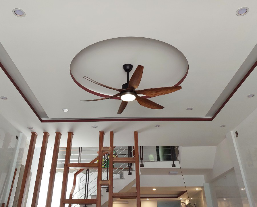 Mang phong cách hiện đại, thiết kế tràn nhã đơn giản. Phối màu ấm cúng, với điểm nhấn là cánh quạt vân gỗ màu nâu cà phê mang lại điểm nhấn sang trọng cho không gian