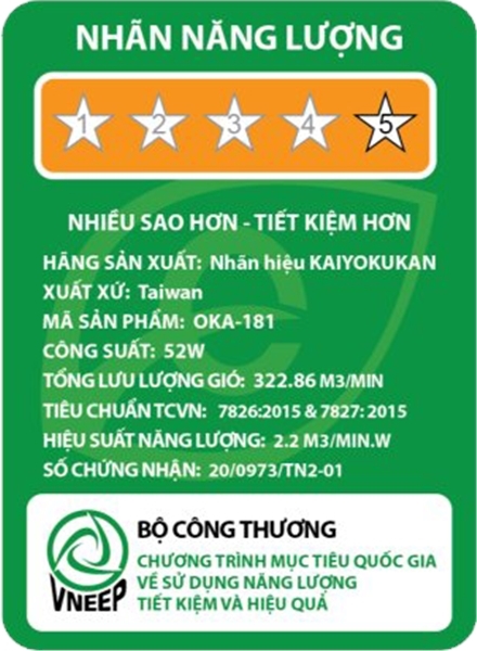 - Đạt tiêu chuẩn năng lượng 5 sao Bộ Công Thương, chứng nhận cao nhất cho sản phẩm tiết kiệm năng lượng
