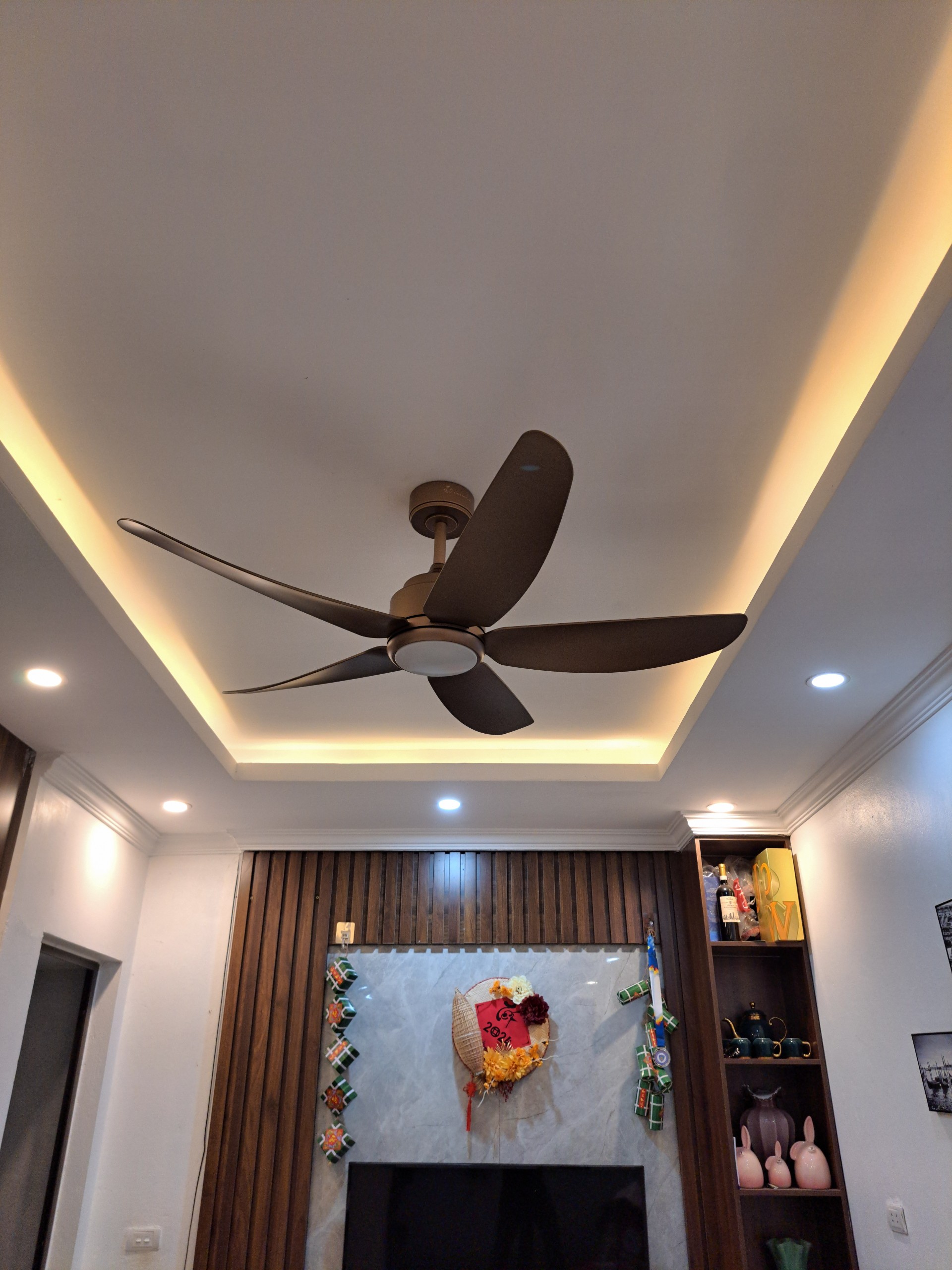 Hình ảnh lắp đặt thực tế quạt trần đèn 5 cánh nhựa ABS Milan FY568 (Dài)