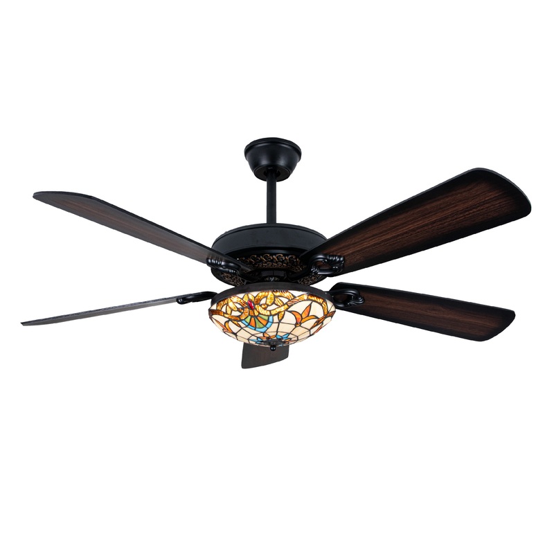 Quạt trần đèn Tiffany 5 cánh gỗ VIFA-78-396 phù hợp cho không gian cổ điển và tân cổ điển