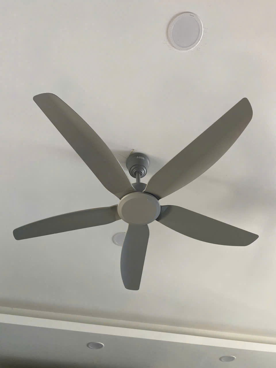 Hình ảnh lắp đặt thực tế và màu sắc của quạt trần động cơ DC 5 cánh màu ghi xám Asia QT16-GX