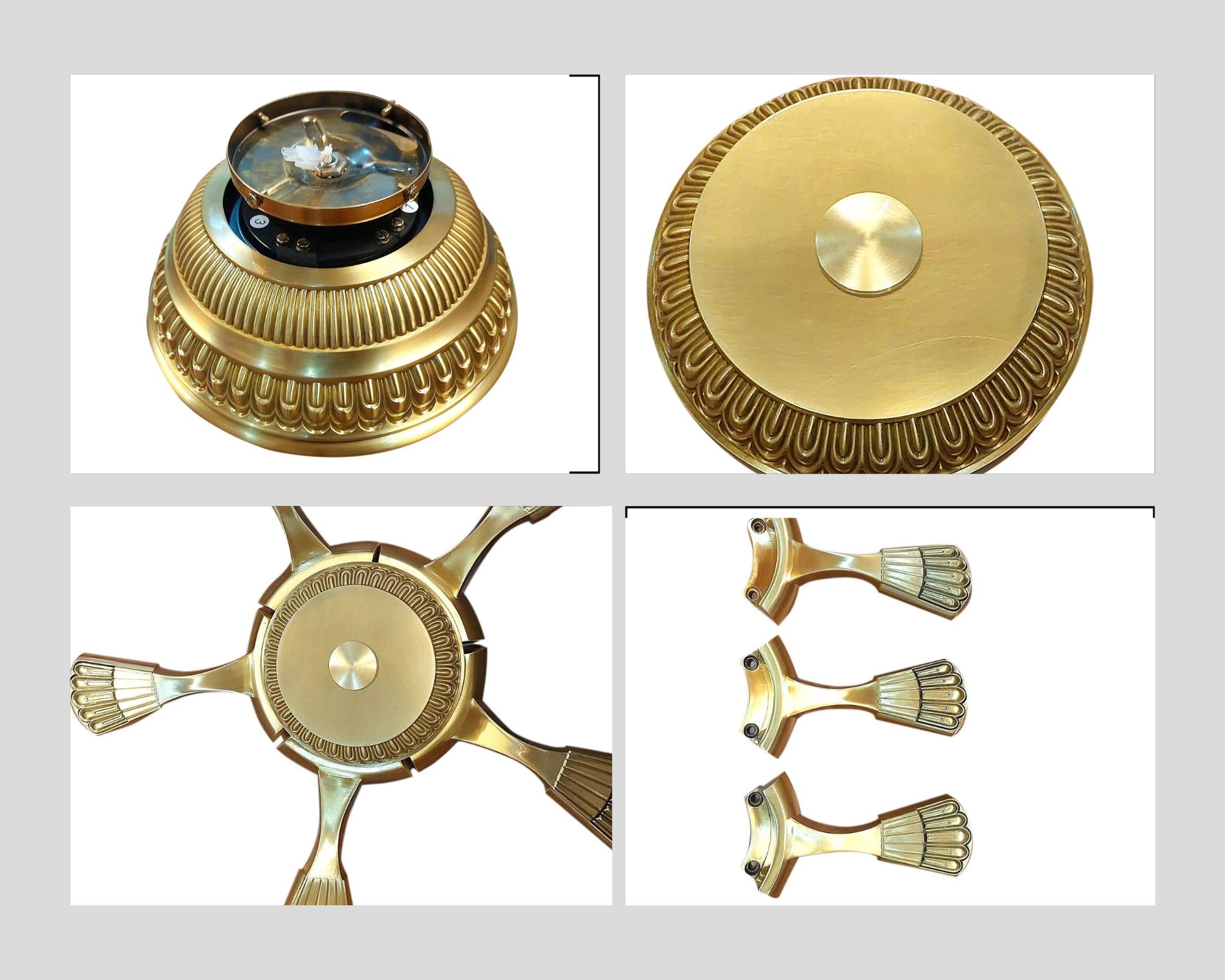 Chi tiết linh kiện quạt trần đồng kiểu cổ điển phòng khách Fengye FY538