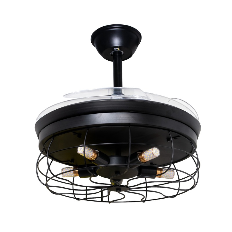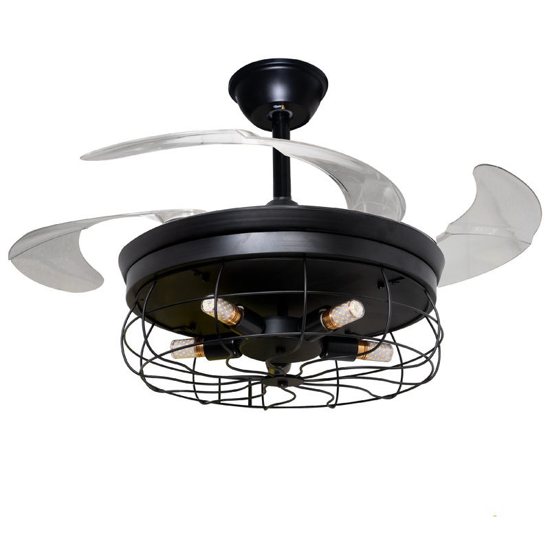 - Quạt trần giấu cánh Vifa 52 với 5 đèn led gắn đuôi E27 được giấu trong bầu quạt hình lồng độc đáo, ấn tượng hơn nếu sử dụng bóng led edison