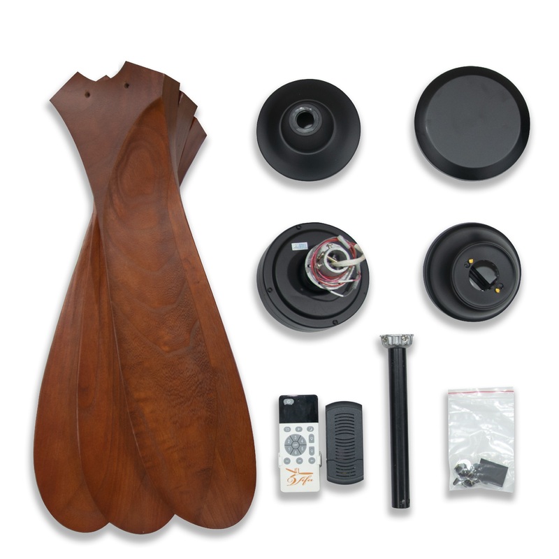 - 3 cánh quạt làm bằng gỗ màu cánh gián đã được xử lý không bị cong vênh mối mọt, bền đẹp theo thời gian