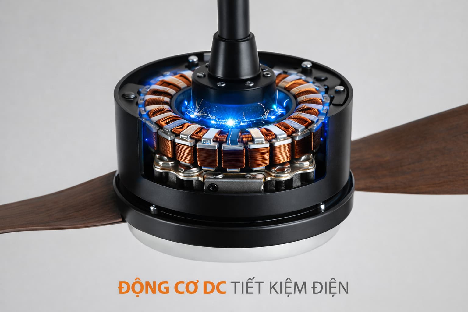 | Công suất quạt | Động cơ DC: 45W Đèn led: 24W (3 chế độ màu) |