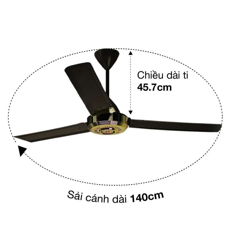 - 2 lựa chọn ti quạt 45.7cm và 30.4cm rất phù hợp cho độ cao trần khoảng 3.2m đến 3.5m, phù hợp sử dụng cho cả phòng khách, phòng ăn lẫn phòng ngủ