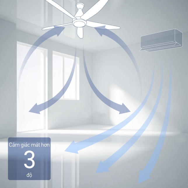 Kích thước sải cánh quạt phù hợp với các diện tích phòng phổ biến