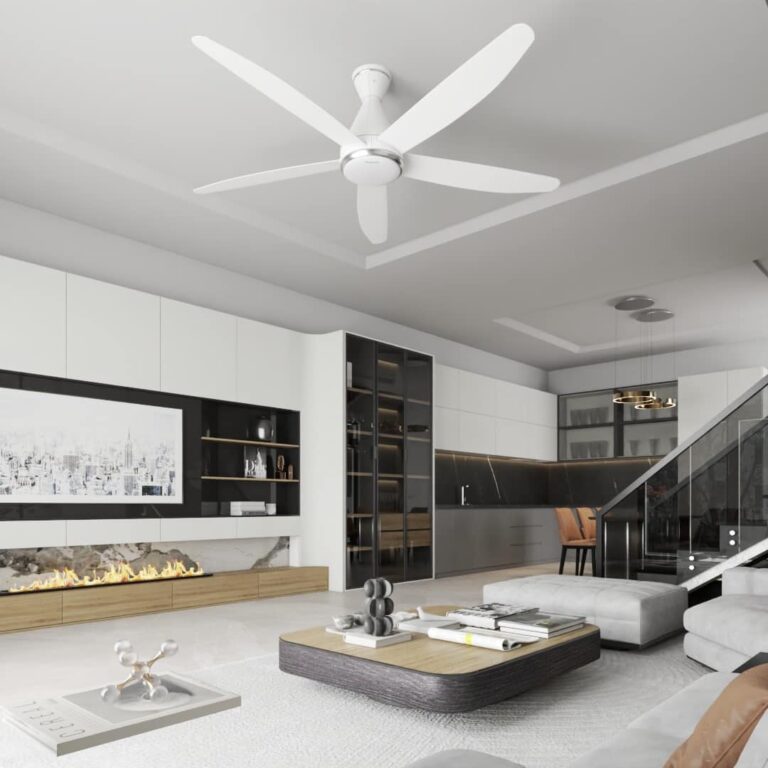 Quạt trần Panasonic 5 cánh màu trắng có đèn F-60GFN phù hợp cho không gian phòng khách