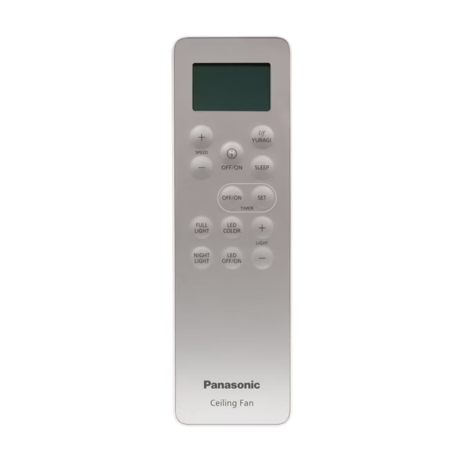Remote quạt trần Panasonic 5 cánh màu trắng có đèn F-60GFN được thiết kế trực quan với màn hình LCD, độ nhạy cao, dễ dàng điều khiển và sử dụng. Với các chức năng được tích hợp trong remote như: