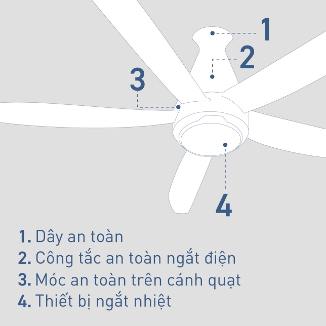 Các chức năng an toàn trên quạt trần Panasonic 5 cánh màu xám F-60HAN
