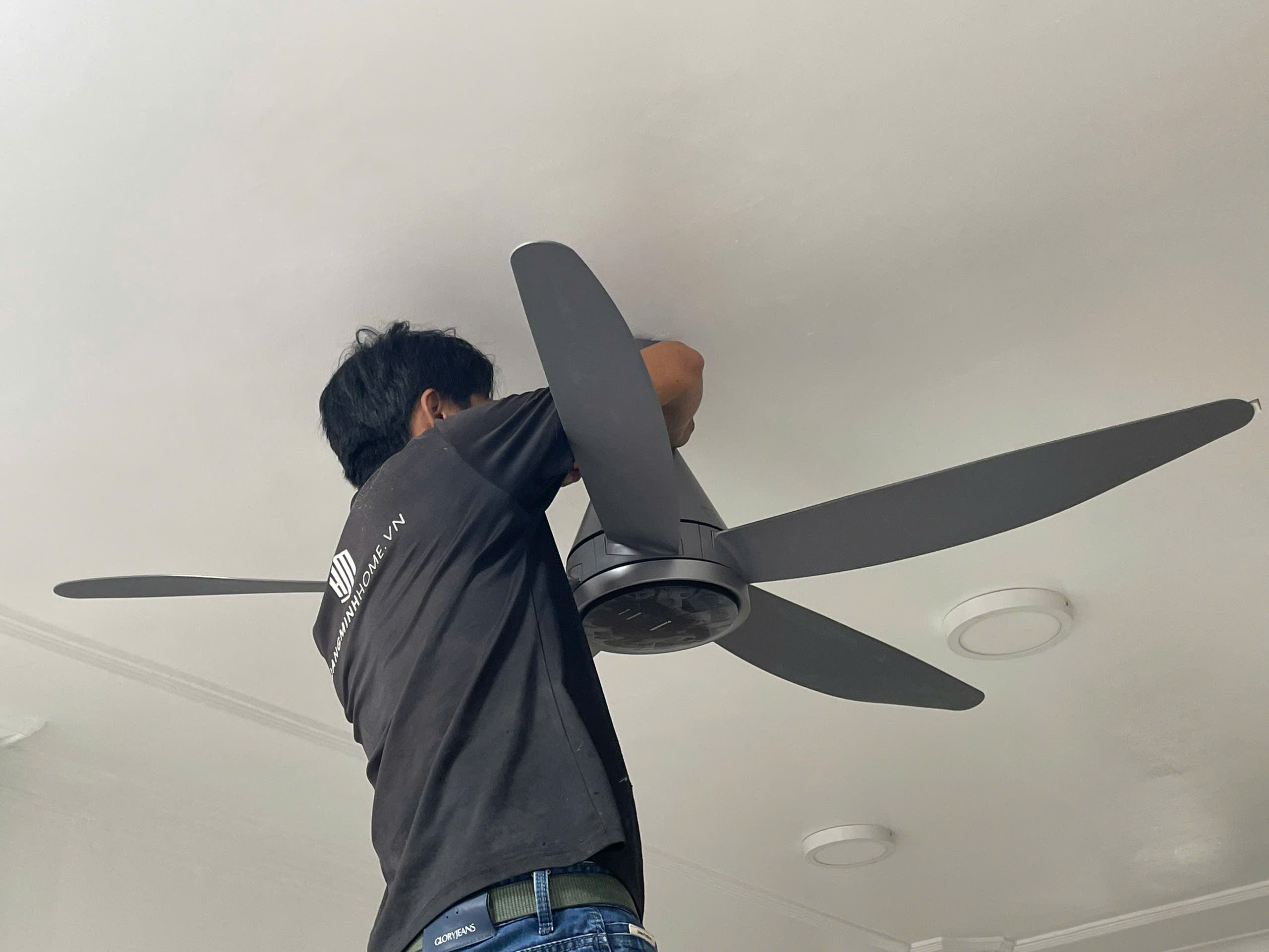 Kĩ thuật viên Hoangminhhome lắp đặt mẫu quạt trần Panasonic F-60HAN